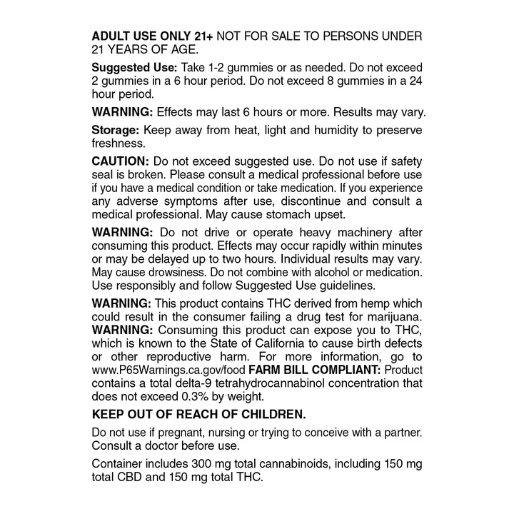 Odpręż się z odrobiną smaku dzięki naszym żelkom Delta 9 THC Relax. Poczuj magiczną równowagę w każdej gumie z 5 mg Delta 9 THC w połączeniu z 5 mg CBD, oferując płynne wrażenia w stylu Indica z posmakiem tropikalnego ponczu.
